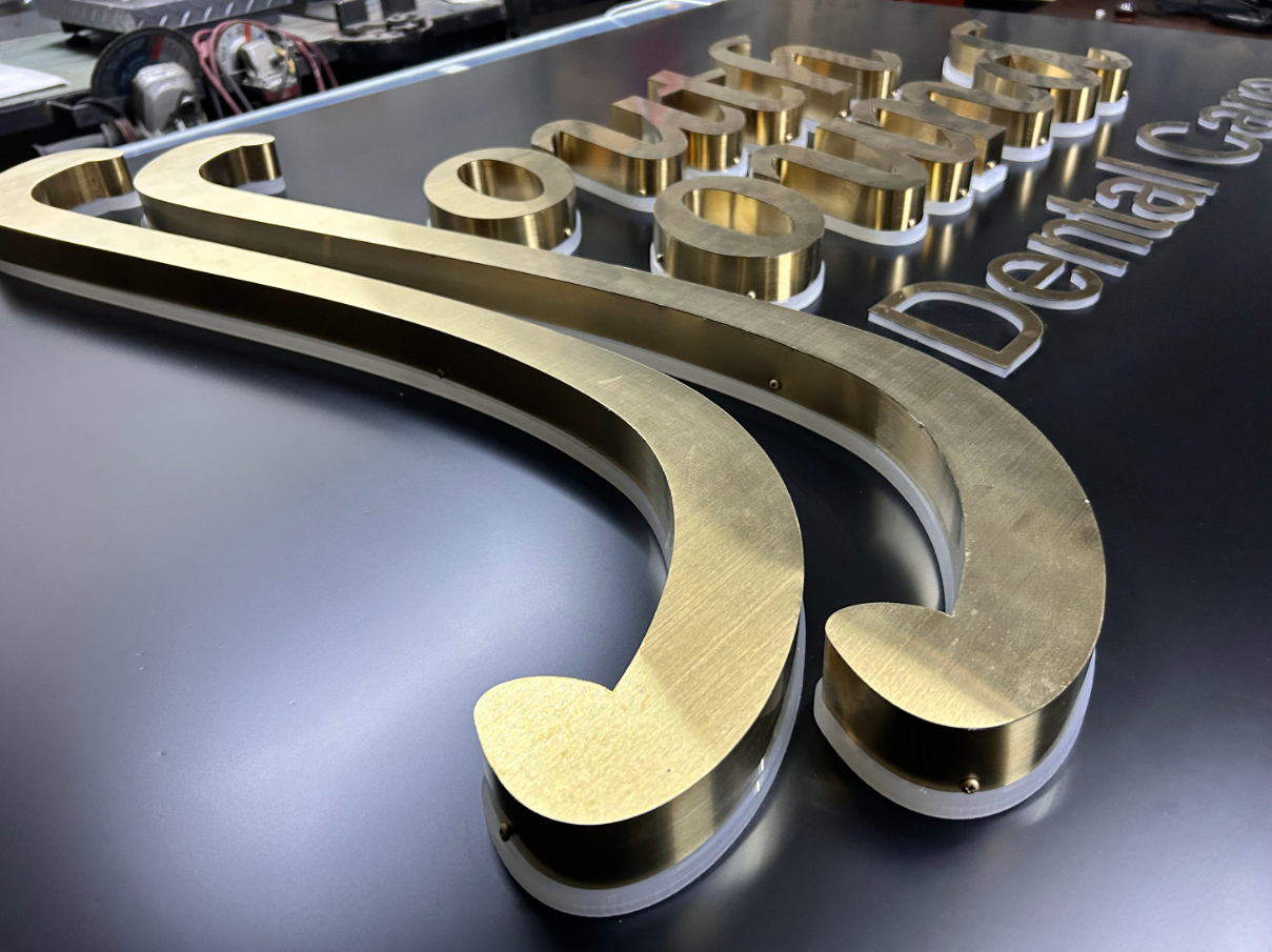 Для корпуса буквы, отполированного вручную угловой шлифовальной машиной, на границе панели и боковой полосы появляется явный скос, что ухудшает форму и конечный эффект